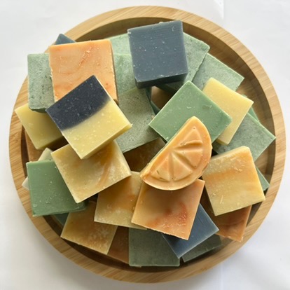 Kézműves, citromfűves szappan szappantartóval vagy szappantasakkal, karácsonyi csomagban