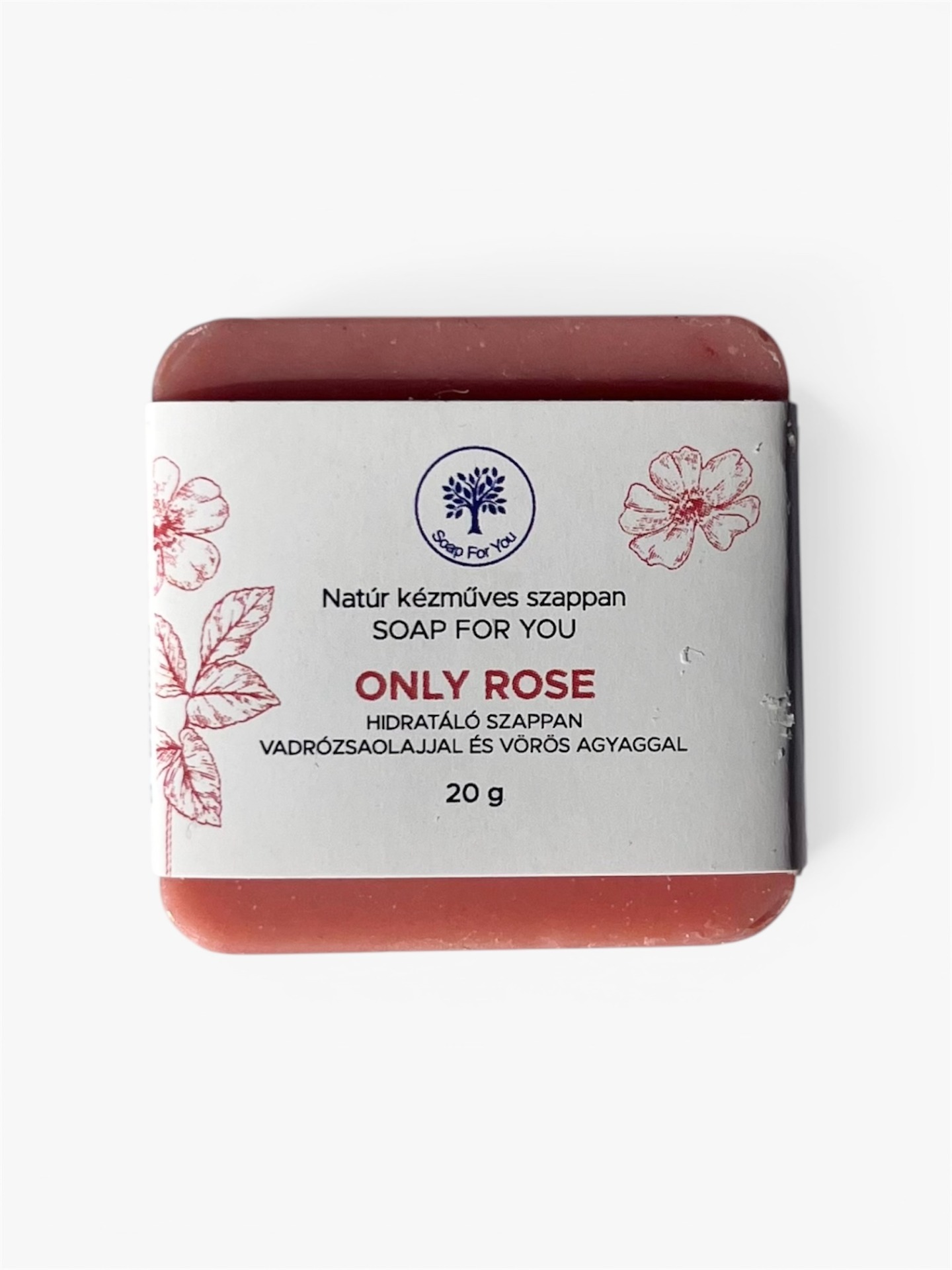 Hidratáló szappan vadrózsamagolajjal és vörös agyaggal.